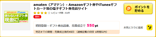 当ブログで以前、紹介したことのある、Amazonギフト券やiTunesギフトカード等の電子ギフト券売買サイトのamaten(アマテン)なんかもありますね。amaten