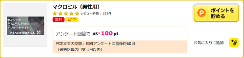 初心者さんにおすすめはここから他のポイントサイトに登録することです。アンケートモニタで有名なマクロミルもあります。これなら通帳記載の目安が1日以内となっているので、すぐ条件を満たせますね。