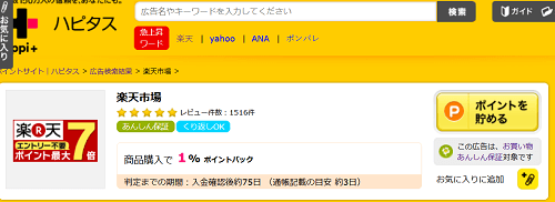 こちらは一週間以内に楽天市場といった、ハピタスで掲載されている、ショッピングサイトでお買物をしたり、広告スポンサーを利用してください、と言う意味です(通帳に「有効」または「判定中」と記載されると対象になる)。