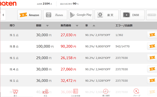 amaten(アマテン)は、Amazon等のギフト券を安心・安全に売り買いできる取引所で、いうなればヤフオク!のような個人間売買の仲介所みたいなものですが、ヤフオク!と違うのは、個人情報を晒すことなく、ギフト券の番号だけで取引が成立する点です。