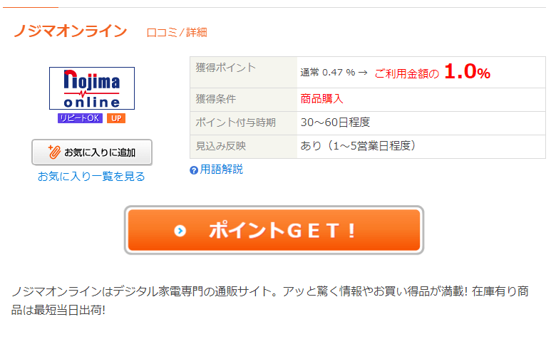 またしてもポイントサイト関連のネタを投稿してしまったけど、これはノジマでお買い物をしようと考えている人にとって垂涎もののお得情報なのでそういう方にお役に立てればいいかなって思っています。