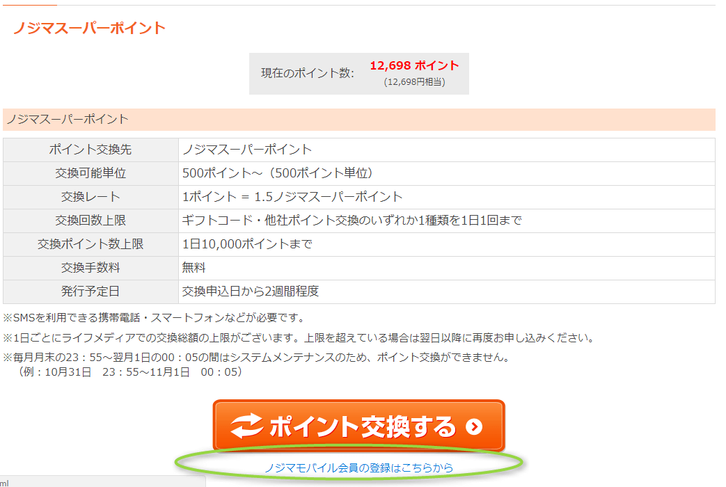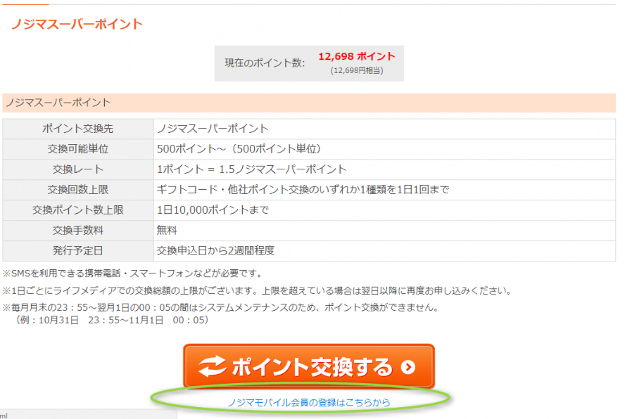 ライフメディアに登録し、ポイントが貯まったら、交換先から「ノジマスーパーポイント」を選択すればいいだけです。