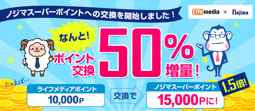 交換先にノジマスーパーポイントがあるのは、ライフメディアだけ!